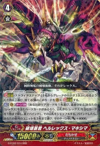Japanese title: ヴァンガード/RRR/Gユニット/たちかぜ/ヴァンガードG ファイターズコレクション2015 Winter G-FC02/014[RRR]:破壊暴君 ヘルレックス・マキシマ