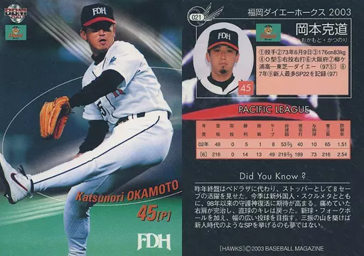 BBM / Regular Card / BBM2003 Fukuoka Daiei Hawks 021 [Regular Card] : Katsumichi Okamoto