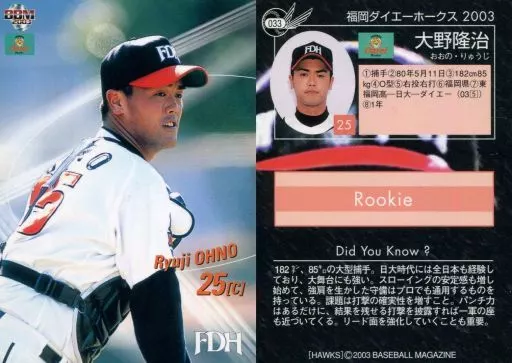 BBM / Regular Card / BBM2003 Fukuoka Daiei Hawks 033 [Regular Card] : Ryuji Ono