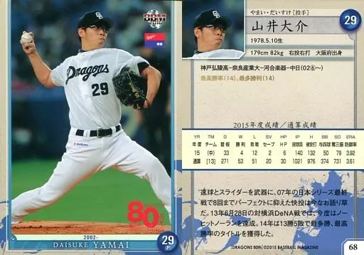 Japanese title: BBM/レギュラーカード/BBM2016 中日ドラゴンズ80周年カード 68 [レギュラーカード] : 山井大介