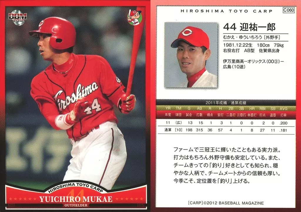 Japanese title: BBM/レギュラーカード/BBM2012 広島東洋カープ C060 [レギュラーカード] : 迎祐一郎