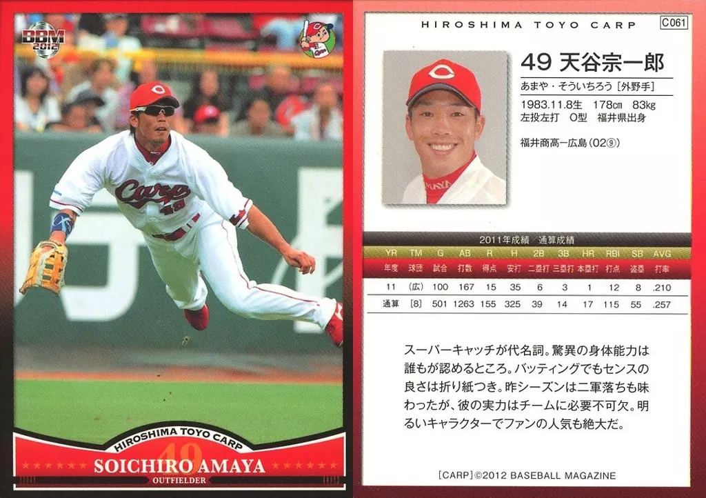 Japanese title: BBM/レギュラーカード/BBM2012 広島東洋カープ C061 [レギュラーカード] : 天谷宗一郎