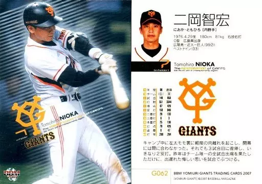 Japanese title: BBM/レギュラーカード/BBM2007 読売ジャイアンツ G062 [レギュラーカード] : 二岡智宏(パラレル版)