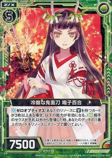 Japanese title: ゼクス/R/ゼクス/緑/第15弾『起動!超神器』 B15-094[R]:冷徹な鬼面刀 鳴子百合