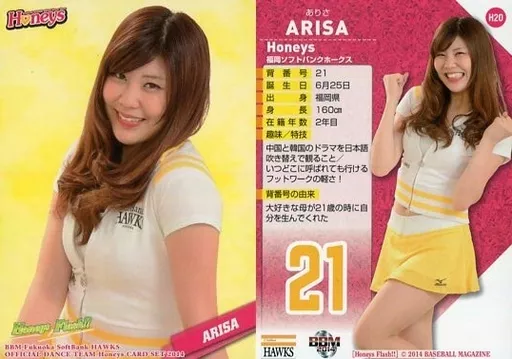 Japanese title: BBM/レギュラーカード/コスチューム/BBM 福岡ソフトバンクホークス オフィシャルダンスチーム Honeysカードセット2014 Honeys Flash!! H20[レギュラーカード]:ARISA