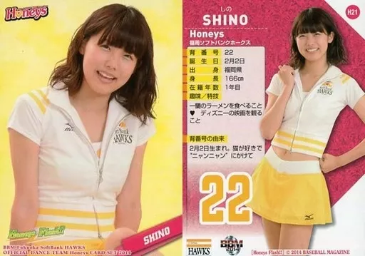 Japanese title: BBM/レギュラーカード/コスチューム/BBM 福岡ソフトバンクホークス オフィシャルダンスチーム Honeysカードセット2014 Honeys Flash!! H21[レギュラーカード]:SHINO
