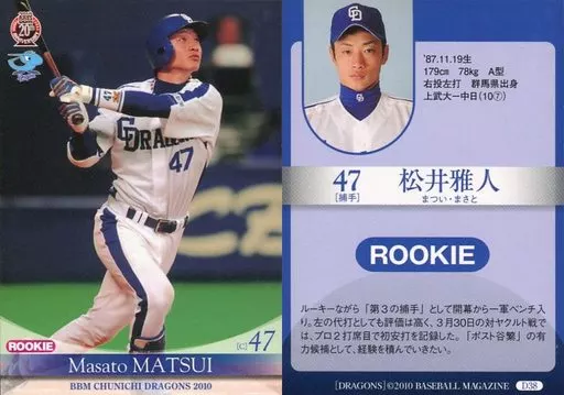 Japanese title: BBM/レギュラーカード/BBM2010 中日ドラゴンズ D38[レギュラーカード]:松井雅人