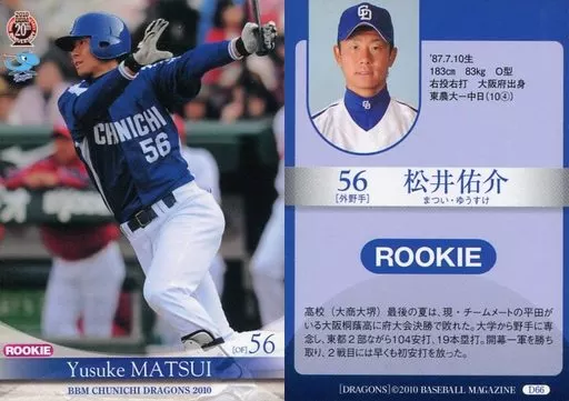 Japanese title: BBM/レギュラーカード/BBM2010 中日ドラゴンズ D66 [レギュラーカード] : 松井佑介