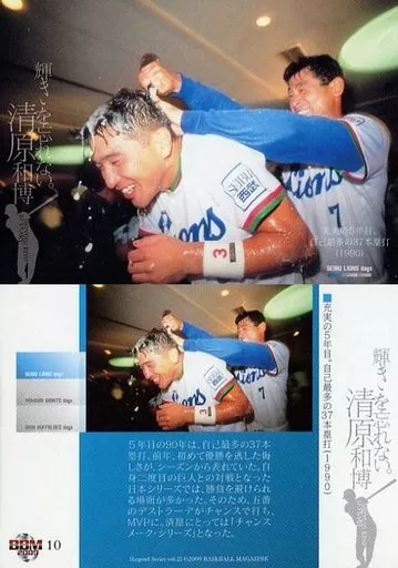 Japanese title: BBM/レギュラーカード/西武ライオンズ/BBM2009 清原和博 引退記念カード「輝きを忘れない。」 10 [レギュラーカード] : 充実の5年目。自己最多の37本塁打(1990)