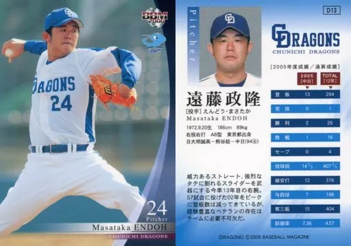 Japanese title: BBM/レギュラーカード/BBM2006 中日ドラゴンズ D13 [レギュラーカード] : 遠藤政隆