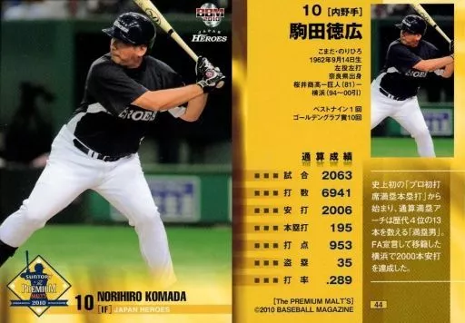 Japanese title: BBM/レギュラーカード/ジャパン・ヒーローズ/BBM2010 サントリー ザ・プレミアム・モルツドリームマッチ 44 [レギュラーカード] : 駒田徳広