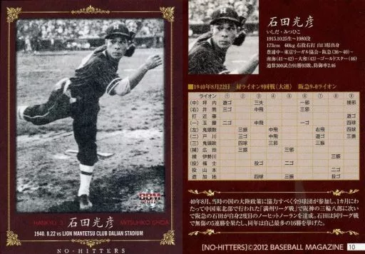 Japanese title: BBM/レギュラーカード/阪急軍/BBM2012 NO-HITTERS「PB歴代ノーヒットノーラン達成者カード」 10 [レギュラーカード] : 石田光彦