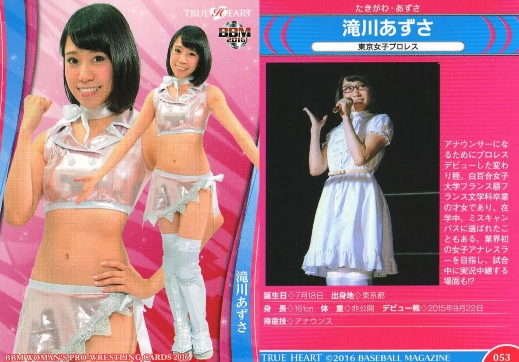 Japanese title: BBM/レギュラーカード/現役選手/BBM 女子プロレスカード2016 TRUE HEART 53 [レギュラーカード] : 滝川あずさ