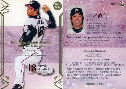 Japanese title: BBM/レギュラーカード/千葉ロッテマリーンズ/BBM2006 Touch the game(タッチ・ザ・ゲーム) 002 [レギュラーカード] : 清水直行