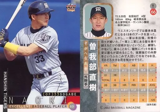 BBM / Regular Card / BBM2002 Limited Hanshin Tigers T66 [Regular Card] : Naoki Sogabe