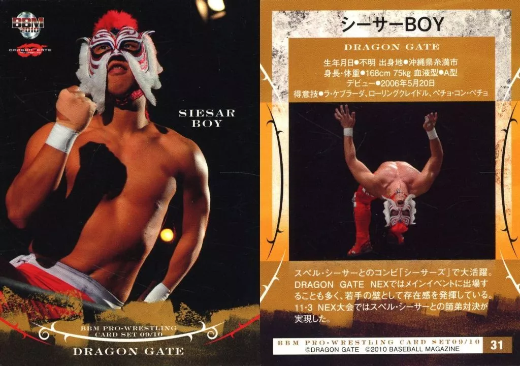Japanese title: BBM/レギュラーカード/BBM2010 プロレスカードセット09/10 DRAGON GATE 31[レギュラーカード]:シーサーBOY