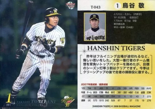Japanese title: BBM/レギュラーカード/BBM2008 阪神タイガース T-043 [レギュラーカード] : 鳥谷敬(パラレル版)