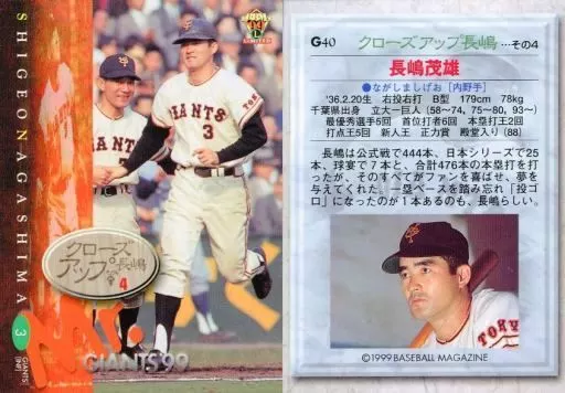 Japanese title: BBM/レギュラーカード/BBM’99 読売ジャイアンツ G40 [レギュラーカード] : クローズアップ4