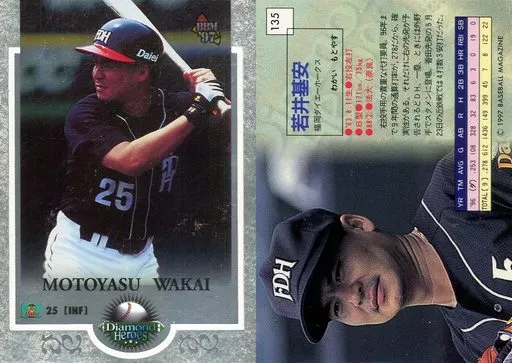 Japanese title: BBM/レギュラーカード/福岡ダイエーホークス/BBM’97 Diamond Heroes(ダイヤモンドヒーローズ) 135 [レギュラーカード] : 若井基安