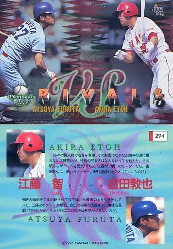 Japanese title: BBM/レギュラーカード/ヤクルトスワローズ/広島東洋カープ/BBM’97 Diamond Heroes(ダイヤモンドヒーローズ) 294 [レギュラーカード] : 古田敦也&江藤智