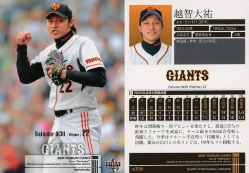 Japanese title: BBM/レギュラーカード/BBM 読売ジャイアンツ 2009 G006 [レギュラーカード] : 越智大祐