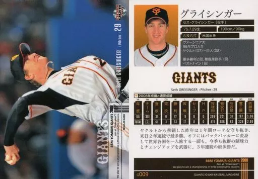 Japanese title: BBM/レギュラーカード/BBM 読売ジャイアンツ 2009 G009 [レギュラーカード] : グライシンガー