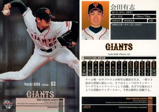 BBM / Regular Card / BBM Yomiuri Giants 2009 G025 [Regular Card] : Yushi Aida (Kira Parallel version)