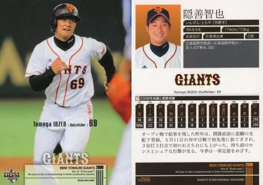 Japanese title: BBM/レギュラーカード/BBM 読売ジャイアンツ 2009 G066 [レギュラーカード] : 隠善智也