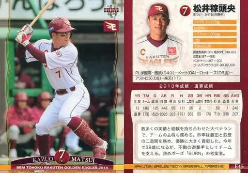 Japanese title: BBM/レギュラーカード/BBM2014 東北楽天ゴールデンイーグルス E45 [レギュラーカード] : 松井稼頭央