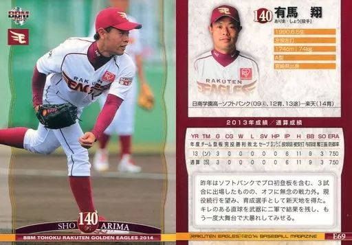 Japanese title: BBM/レギュラーカード/BBM2014 東北楽天ゴールデンイーグルス E69 [レギュラーカード] : 有馬翔