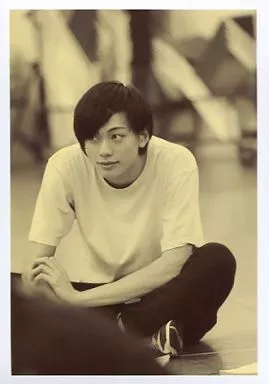 Japanese title: 生写真(男性)/俳優 東啓介(千歳千里)/全身・衣装白・胡坐座り・モノクロ・私服ショット/ミュージカル『テニスの王子様』春の大運動会2014