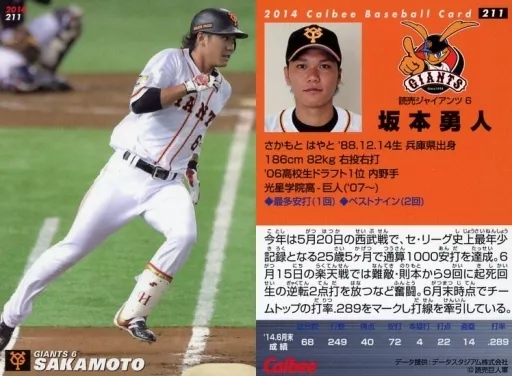 Japanese title: スポーツ/レギュラーカード/2014プロ野球チップス第3弾 211[レギュラーカード]:坂本勇人