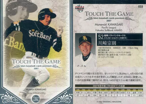 Japanese title: BBM/レギュラーカード/福岡ソフトバンクホークス/BBM2007 タッチ・ザ・ゲーム 033 [レギュラーカード] : 川崎宗則