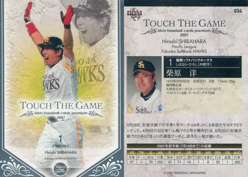 Japanese title: BBM/レギュラーカード/福岡ソフトバンクホークス/BBM2007 タッチ・ザ・ゲーム 034 [レギュラーカード] : 柴原洋