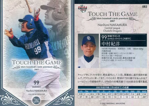 BBM / Regular Card / Chunichi Dragons / BBM2007 Touch the Game 083 [Regular Card] : Norihiro Nakamura