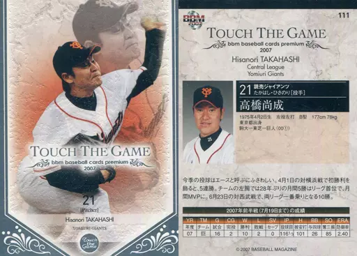 Japanese title: BBM/レギュラーカード/読売ジャイアンツ/BBM2007 タッチ・ザ・ゲーム 111 [レギュラーカード] : 高橋尚成