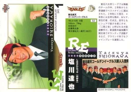 Japanese title: BBM/レギュラーカード/ルーキーレギュラー/東北楽天ゴールデンイーグルス/BBM2005 ルーキーエディション 32 [レギュラーカード] : 塩川達也