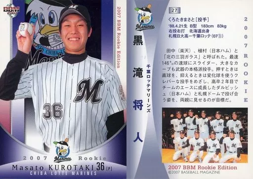 Japanese title: BBM/レギュラーカード/千葉ロッテマリーンズ/BBM2007 ルーキーエディション 27 [レギュラーカード] : 黒滝将人