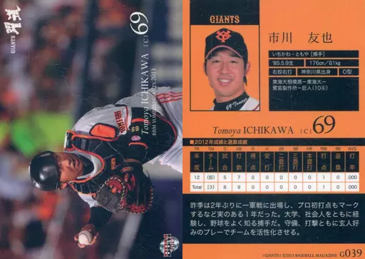 Japanese title: BBM/レギュラーカード/BBM2013 読売ジャイアンツ G039 [レギュラーカード] : 市川友也