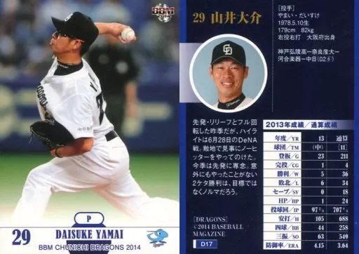 Japanese title: BBM/レギュラーカード/BBM2014 中日ドラゴンズ D17 [レギュラーカード] : 山井大介