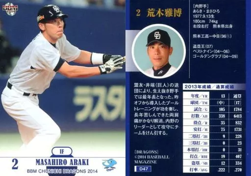 Japanese title: BBM/レギュラーカード/BBM2014 中日ドラゴンズ D47 [レギュラーカード] : 荒木雅博