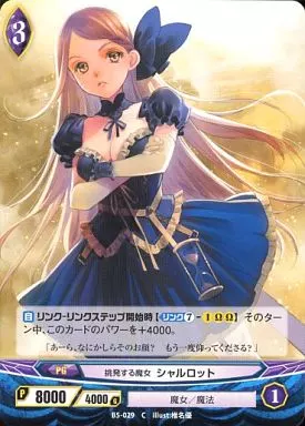 Japanese title: アンジュ・ヴィエルジュ/C/黒/PG/魔女/魔法/ブースターパック第5章「緑の門を喚ぶ少女」 B5-029[C]:挑発する魔女 シャルロット