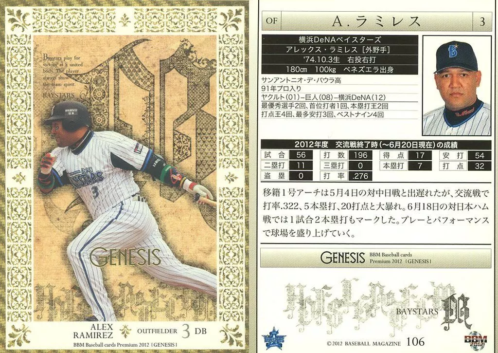 BBM / Regular Card / Yokohama DeNA BayStars / BBM2012 Baseball Card Premium Genesis 106 [Regular Card] : Ramirez