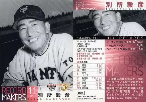BBM / Regular Card / OB Player / Yomiuri Giants / BBM2006 Historic Collection Record Makers 004 [Regular Card] : Takehiko Bessho