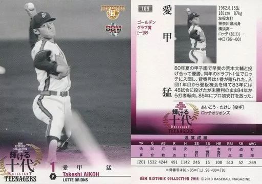 Japanese title: BBM/レギュラーカード/ロッテオリオンズ/BBM2014 ヒストリックコレクション 輝ける十代 109 [レギュラーカード] : 愛甲猛