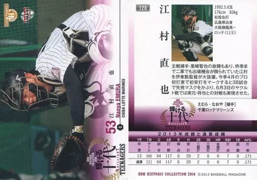 Japanese title: BBM/レギュラーカード/千葉ロッテマリーンズ/BBM2014 ヒストリックコレクション 輝ける十代 120 [レギュラーカード] : 江村直也