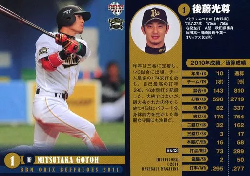 BBM / Regular Card / BBM2011 Orix Buffaloes Bs43 [Regular Card] : Mitsutaka Gotoh