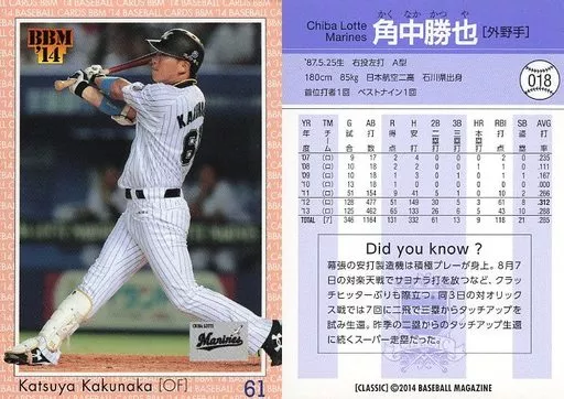 Japanese title: BBM/レギュラーカード/現役レギュラー/千葉ロッテマリーンズ/BBM2014 ベースボールカードクラシック 018 [レギュラーカード] : 角中勝也