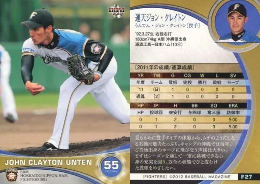 Japanese title: BBM/レギュラーカード/BBM2012 北海道日本ハムファイターズ F27 [レギュラーカード] : 運天ジョン・クレイトン