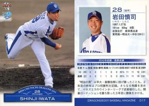 Japanese title: BBM/レギュラーカード/BBM2011 中日ドラゴンズ D17 [レギュラーカード] : 岩田慎司